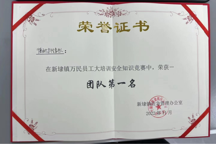 近日,为全面实施全民安全素养提升计划,根据《浙江省企业百万员工安全大培训实施方案》和《嘉兴市企业十万员工安全大培训实施方案》的有关要求,平湖市新埭镇应急管理办公室结合实际,迅速组织开展“全市企业万名员工安全大培训安全生产知识竞赛”德耐尔能源装备有限公司代表荣获团体冠军。