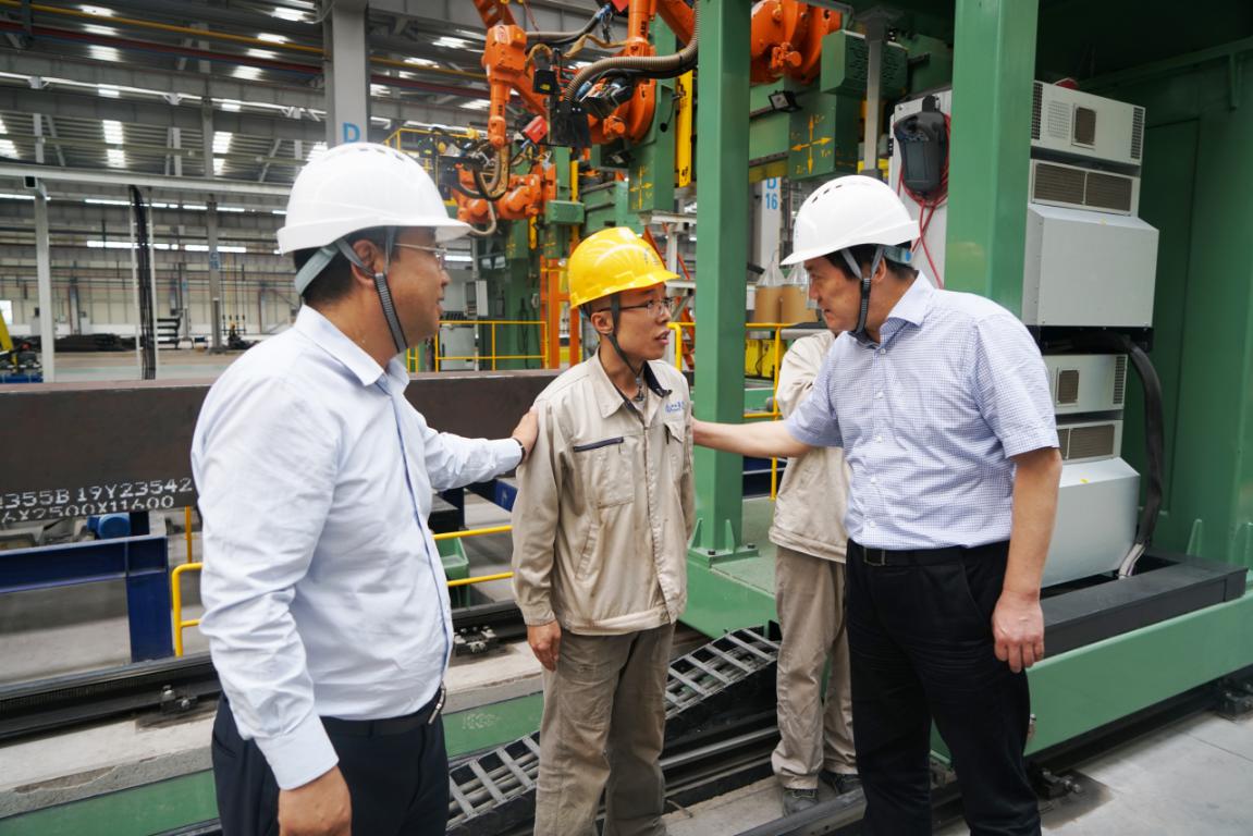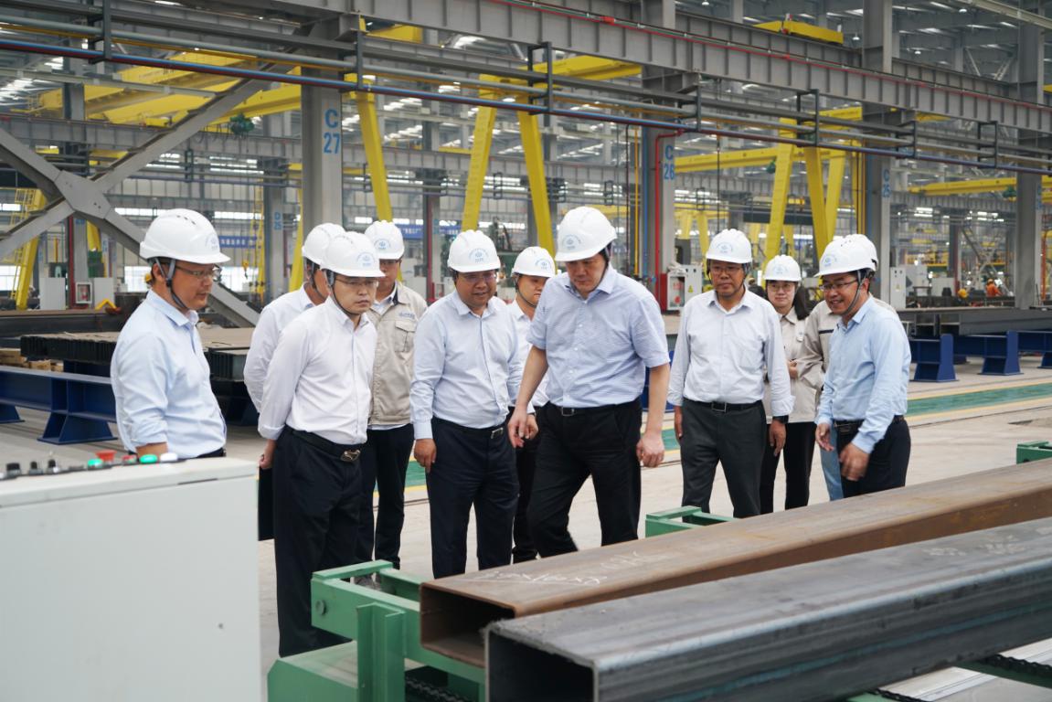 李卫平一行首先深入园区装配式钢结构办公生活区建设施工现场和钢结构智能化生产车间,对项目投资建设进展情况以及生产状况作了细致了解,并慰问了奋战在施工和生产一线的产业技术人员,强调务必高度重视施工和生产安全工作,保障项目顺利实施。李卫平对项目典型示范引领和建设速度给予了高度认可,并就园区一、二期工程整体规划、投资和实施方案等方面提出了具体要求,同时鼓励大家要不忘初心,牢记使命,以新担当新作为开创装配式建筑智能制造新天地!