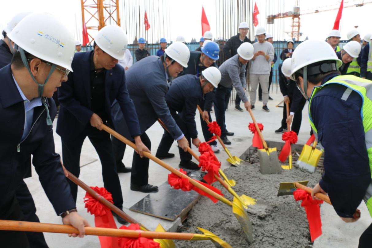 上午十一时许,李卫平宣布封顶仪式正式开始,与会领导共同为项目主体结构封顶浇注混凝土。