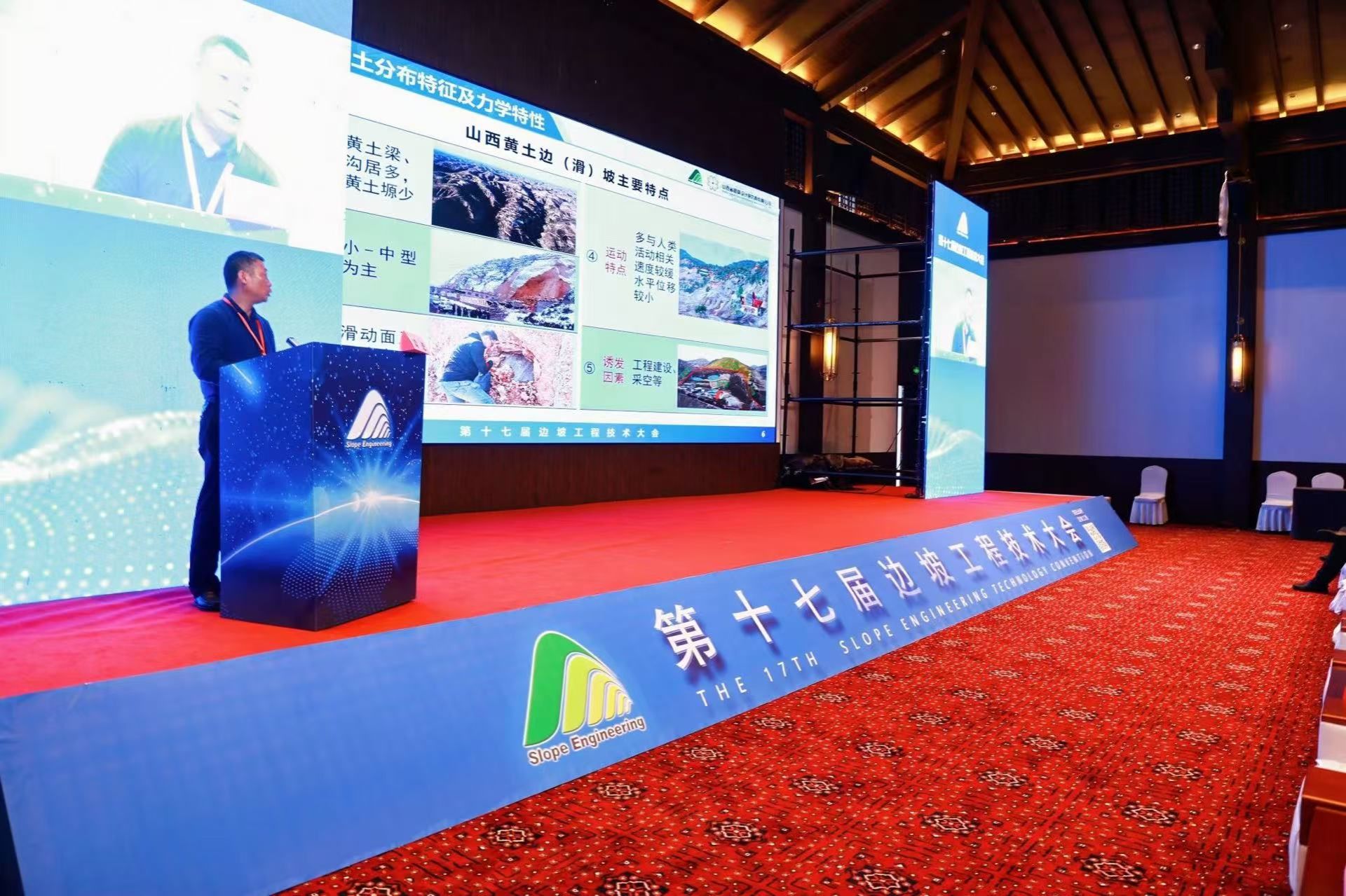 会议期间,勘察院公司副总经理、总工程师梁进受邀作题为“黄土边(滑)坡应急处置案例分享与经验总结”的学术报告。报告聚焦晋西北某煤矿滑坡与晋西中阳县某滑坡两大典型案例,系统阐述了从勘察设计、应急响应到技术实施的全过程关键技术,深入剖析了黄土边坡应急处置中的难点与对策,并分享了勘察院公司结合区域特点与企业技术优势所形成的实践经验。报告内容翔实、案例典型,充分展示了勘察院公司在复杂地质条件下解决关键技术难题的能力,引起了与会专家的广泛关注和热烈讨论。
