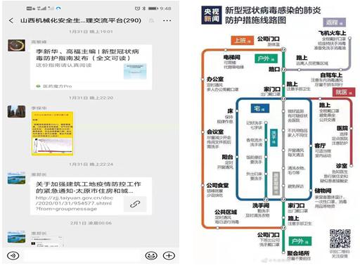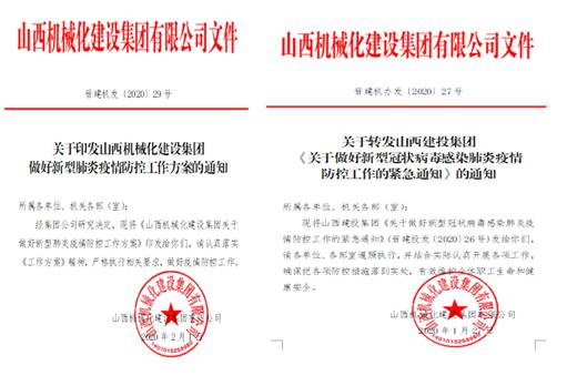 同时,及时转发《山西建投集团关于做好新型冠状病毒感染肺炎疫情防控工作的紧急通知》,印发《山西机械化建设集团有限公司关于做好新型肺炎疫情的防控工作方案》。方案要求疫情防控领导组成员要按照“一岗双责”要求,分片包干,履行督导责任。成立综合协调小组、项目实施小组、机关后勤实施小组、宣传报道小组、检查督导小组等五个工作组,做到责任到人,无死角防控疫情。方案还从全面摸排掌握人员信息、做好机关人员返岗疫情防控、做好项目一线疫情防控、做好物业管理区域疫情防控、强化舆论宣传引导、严格落实责任追究等方面做了详细安排。